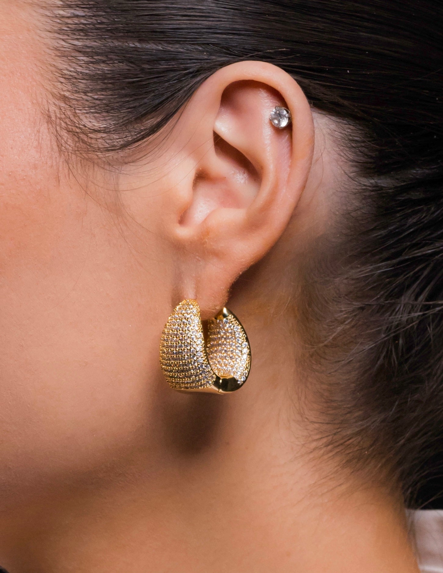 The shiniest pair of earrings you'll own. Hand polished copper with 18k gold plating, finished off with CZ inlaid stones.